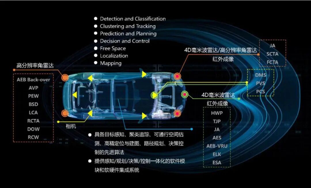 在關(guān)鍵技術(shù)上,新一代電子電氣架構(gòu)、車用操作系統(tǒng)、大算力計算芯片等已經(jīng)實現(xiàn)了裝車應(yīng)用,跨域融合與控制器技術(shù)也取得了突破。例如,高性能激光雷達的感知范圍已經(jīng)達到了250米。
